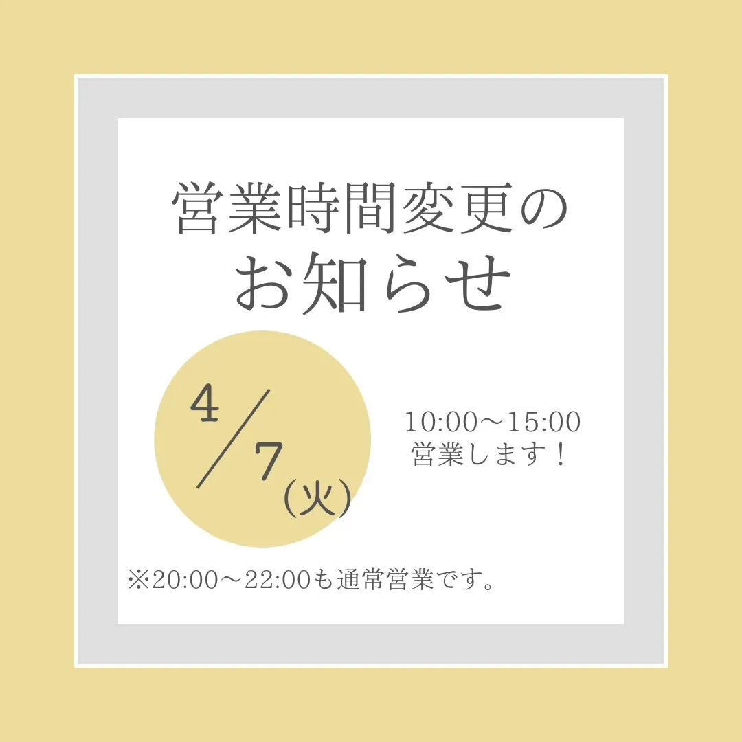 明日4/7(火)まで10:00〜15:00の時間も営業します!